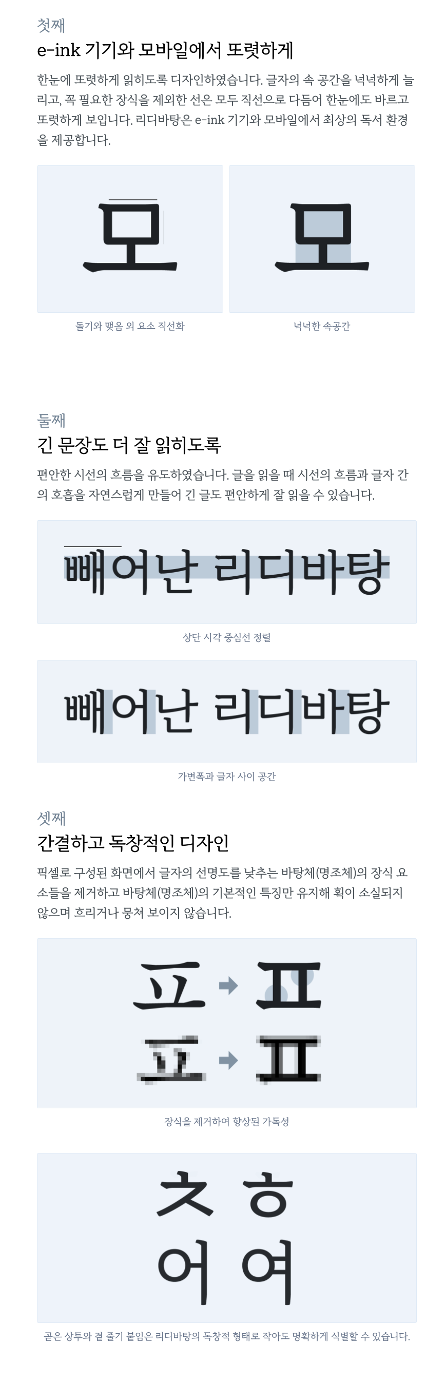 더 선명하고, 긴 문장도 잘 읽을 수 있는 전자책 전용 글꼴 리디바탕을 소개합니다.