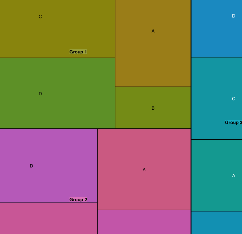 나무지도 그림은 계층적 데이터를 사각형 크기로 비교합니다.