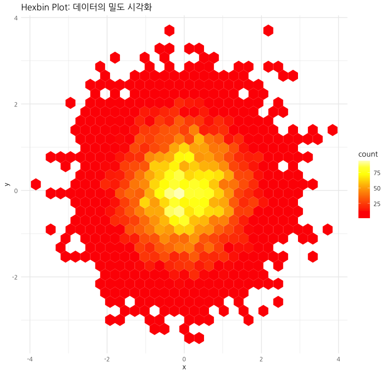 ggtitle("Hexbin Plot: 데이터의 밀도 시각화") + # 제목 설정