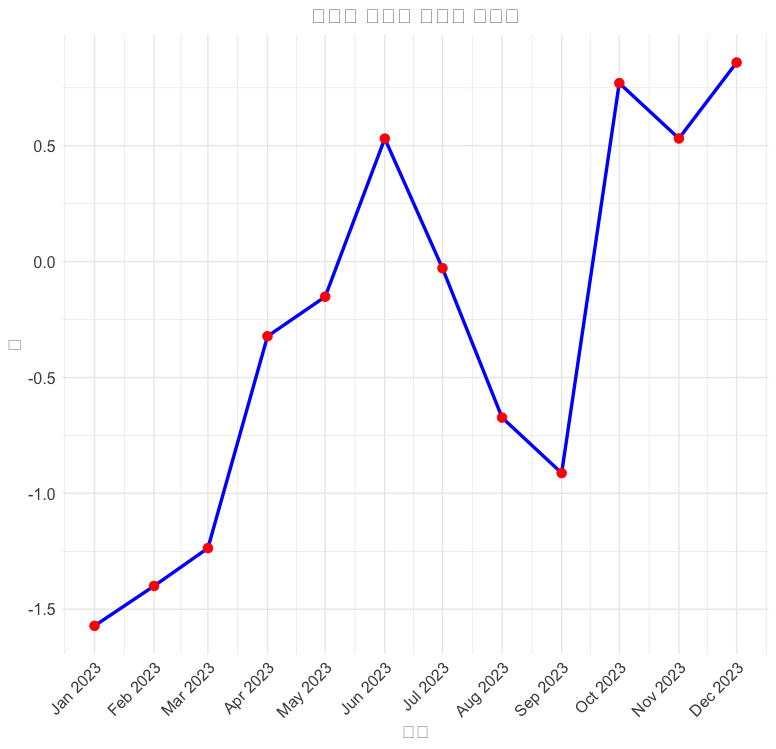 ggtitle("시계열 데이터 라인 차트") +