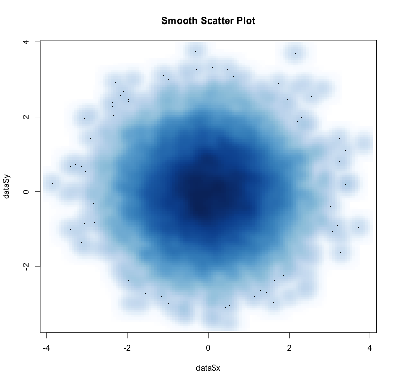 smoothScatter(data$x, data$y, main = "Smooth Scatter Plot")