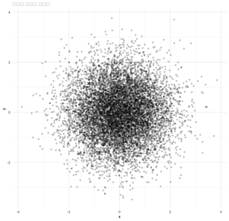 x = rnorm(10000), # x축 데이터: 정규분포를 따르는 10,000개의 난수