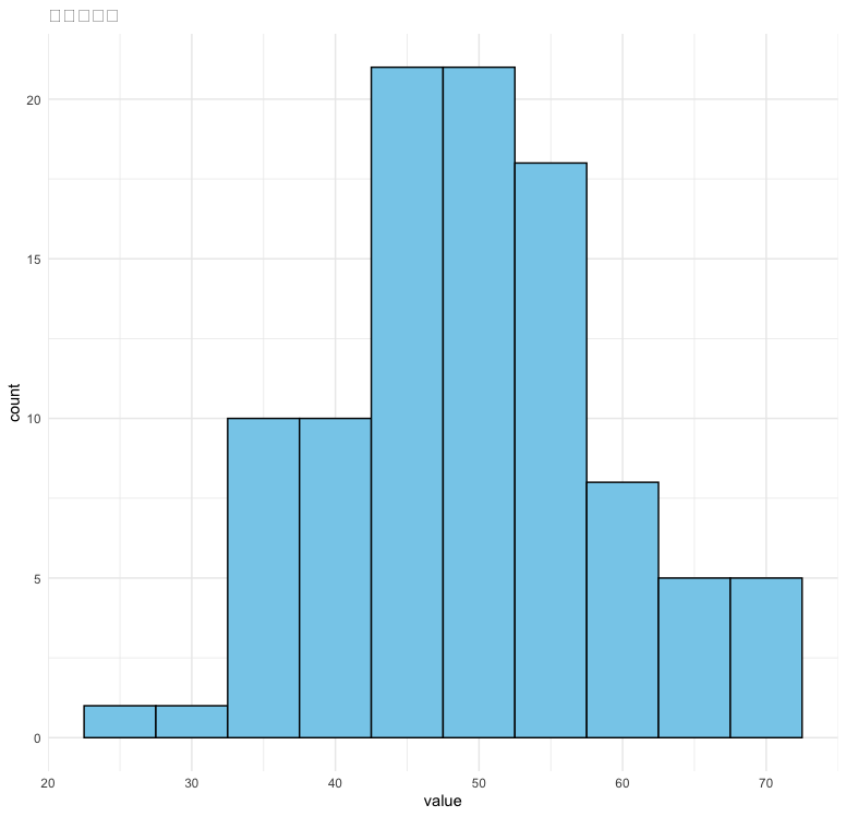 data <- data.frame(value = rnorm(100, mean = 50, sd = 10))