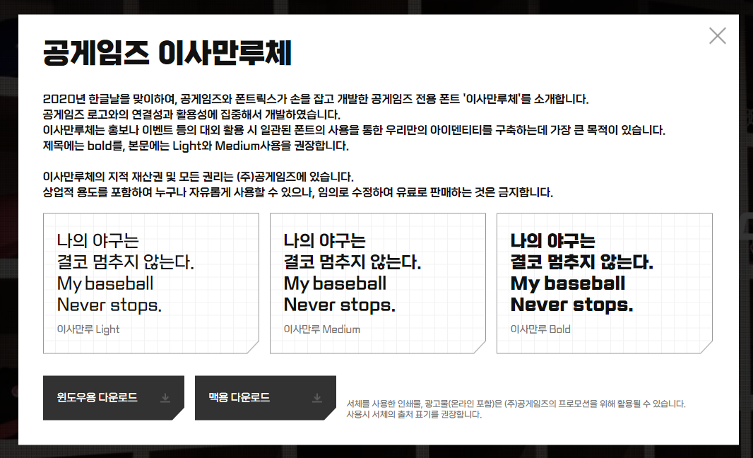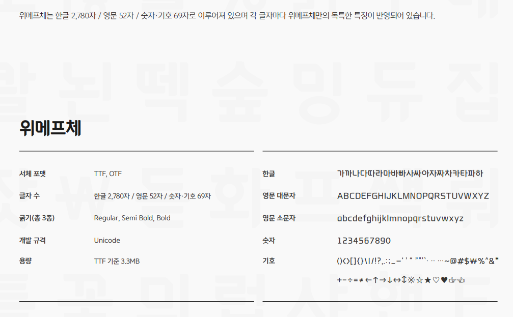 디바이스 탑재, 서버 임베딩, 웹폰트형식, 모바일 앱 및 온라인 게임, 채팅용 등 전 분야 폰트파일 탑재되는 형태 일체