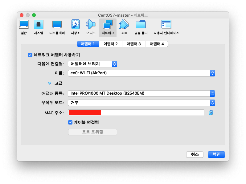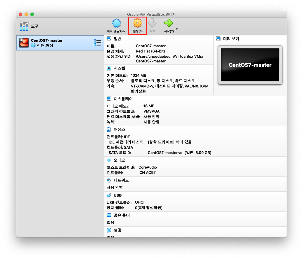 ※ VirtualBox 에서 CentOS7 를 설치하셨다면 아래의 [더보기]를 눌러주세요!